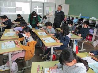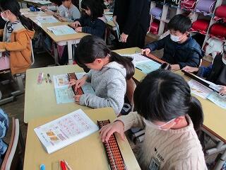 2月17日(月)1・2校時、3年教室で「そろばん出前授業」が行われました。講師の先生が3名来校され、丁寧に教えていただきました。