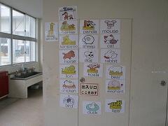 廊下には、たくさんのカードが掲示され、英語に触れる環境が作られています。
