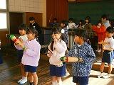 1年生の音楽の様子です。歌に合わせ、思い思いの楽器でリズムを合わせる学習でした。みんな楽しそうです。