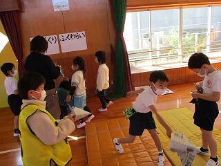 1月29日(水)2・3校時、1年生は体育館で校区内にある保育園の年長さんとの交流会を行いました。