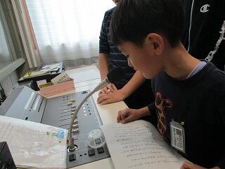今回は、1年生の2人が、昔遊び体験の作文を発表してくれました。その発表に続けて、作文のよかった点を2年生2人が放送してくれました。