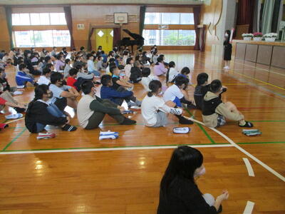 6年生と3年生が意見発表をしました。本年度頑張りたいことを立派に発表することができました。