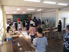 5校時、音楽室では、窓を開けて換気をし、間隔を確保し、マスクを着用した上で、合唱の練習を行いました。
