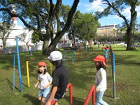2年生は、運動場で「たかオニ」をしていました。ちょっとでも高いところに移動しながら、タイミングをみて、オニから逃げていました。オニも笑顔で追いかけていました。