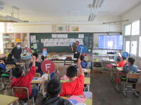 特に3年生は、初めての外国語活動で興味津々のようでした。初めての授業でしたが、一生懸命にアリーサ先生の発音を聞き、外国語に親しんでいました。