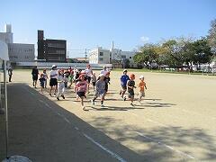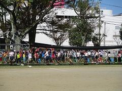 赤団が応援の練習をしている運動場では、全校リレーの選手たちが、入場から退場までの一連の動きの確認、練習を行っていました。