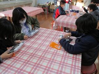 ランチルームでは、化粧箱づくりを行いました。子どもたちは、「何を入れる箱にする?」といった会話をしながら、技能士の方に教えていただきながら、楽しく活動していきました。