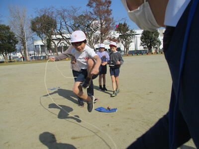 12月から体育の時間を中心に、どの学年もなわとび運動に取り組んでいます。子どもたちは、配付されたなわとびカードを見て、自分のめあてとする技や回数に楽しみながら挑戦しています。