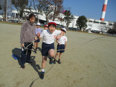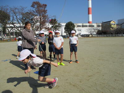 また、みんなで力を合わせる長縄(8の字)も子どもたちは大好きです。2年生が練習をしながら、少しずつ入るタイミングをつかんでいました。