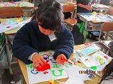 図工「うつしたかたちから」の作品作りを行っています。カラフルな作品ができあがりそうです。