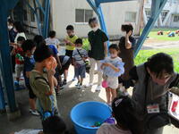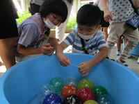 恒富小児童クラブから「ヨーヨーつり」活動のお誘いが職員室へありました。児童クラブへの渡り廊下へ行ってみると、たらいの水に浮かんだヨーヨーを子どもたちが真剣なまなざしでつり上げていました。そして、自分たちの手のひらよりも大きなヨーヨーを手にそれぞれに楽しんでいました。