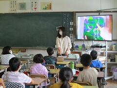 先生によって、絵本をテレビ画面に映して実施したり、実際の絵本を手に持って読み聞かせをしたりと形は違いましたが、子どもたちは、興味津々、目を輝かせながら、話を聞いていました。