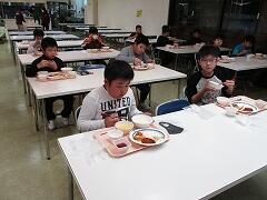 食事は、感染予防対策のため、間隔を取り、全員前向きでの食事となりました。