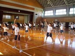 体育館では、ソーラン節の練習が熱心に行われていました。