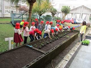 11月25日(月)、フラワータイムが行われました。卒業式を彩る一人一鉢の苗の植え付けと、学級園への植え付けを行いました。