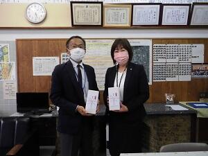 11月18日(木)に日本教育公務員弘済会より、手指消毒に使うノータッチディスペンサーを2個寄贈していただきました。