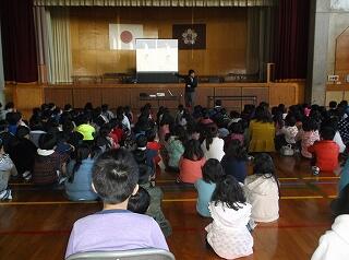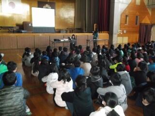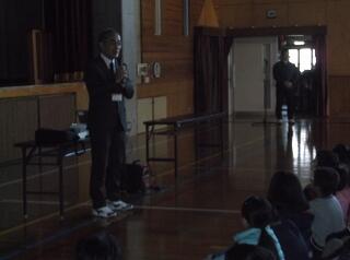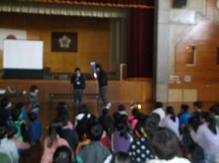 全校朝会がありました。校長先生の話、学習部の話(ノート展)保体部の話(一輪車・竹馬)がありました。