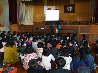 ベルマークで購入したCDラジカセの贈呈式を行いました。PTAの執行部の方々に来ていただいて贈呈していただきました。ありがとうございました。1・2・3年生の教室でこのラジカセは活躍します。