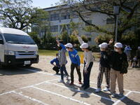 今日は、「うめだがくえん」さんに講師としてきていただき、交通教室が行われました。安全な横断歩道の渡り方について丁寧に指導していただきました。信号有る横断歩道、信号機のない横断歩道、車が止まっていて見通しの悪い横断の方法など、状況に合わせた横断の仕方を学びました。