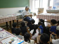 今日は、「絵本の広場」=「職員による読み聞かせ会」が行われました。本の題名を見て、自分が聞いてみたい絵本を選びその本の読み聞かせ会に参加すると言うものです。どの教室も楽し入り込んでいました入り込んでいました。