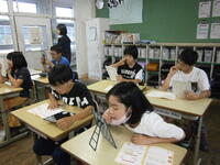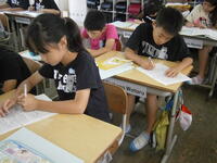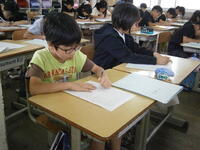 朝の15分間の時間にチャレンジタイムを行っています。この時間では、100ます計算や音読等を行って「脳の活性化」を図り、集中力を高める効果もあるものです。年間を通してしかり継続していきたいと考えています。3年生、4年生の集中している様子です。