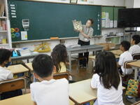 5年生は、延岡市の産業について学習しています。今回は、延岡市観光協会の方に来ていただき、延岡の産業について学習しました。延岡ならではの産業とするために工夫していいることなどお話ししていただきました。