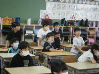 第1回学校運営協議会が開催されました。学校と地域との連携、協働を進めるための会議となります。地域の方々やPTAの代表の方々にも参加していただいています。その授業参加の様子です。どの学級も元気に学習している様子をご覧頂きました。