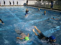今日は絶好のプール開き日和りとなりました。青空の広がる空の下、元気に水泳の学習が始まりました。