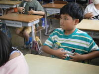 1年生がアサガオの観察をしていました。まいた種が芽を出し、葉っぱがたくさんになってきています。きれいな花が咲くのが楽しみですね!一生懸命に葉っぱを観察していました。