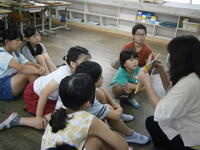 今日は、「絵本の広場」=「職員による読み聞かせ会」が行われました。本の題名を見て、自分が聞いてみたい絵本を選びその本の読み聞かせ会に参加すると言うものです。どの教室も楽し入り込んでいました入り込んでいました。