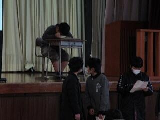 1月28日(火)朝、給食感謝集会が行われました。まず初めに、5・6年生の給食委員会による発表がありました。今回は、給食の配膳の仕方と食べ方のマナーについての発表でした。スライドを使っての発表の他、マナー違反の食べ方の実演など、工夫された発表でした。