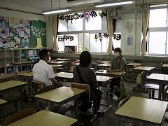 ここでも感染予防対策として、玄関では手指消毒、担任も保護者もマスクを付け、窓を開けて換気をし、間隔を空けての面談となりました。