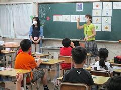 英語専科の先生と外国語サポーターの先生の2人で授業をされます。
