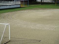 徒競走やリレー等で使用する、運動場のトラックのカーブのラインがきれいに引かれました。子どもたちも、気持ちよく、練習に取り組むことができそうですね。