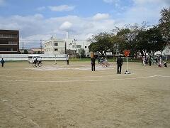 リーダーの指示に従い、体いっぱい、大きい動作で応援しました。