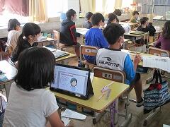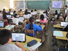 子どもたちは、タブレットの使い方にも慣れ、先生の指示に従って、次々にスライドを作成していきました。