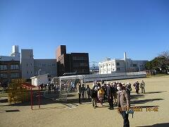 教頭先生の「火災発生、避難開始」の放送を聞き、学級担任の指示のもと、運動場北側に避難しました。
