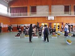 卒業生が廊下に整列し、教室の中にいる在校生とのお別れ式をしました。