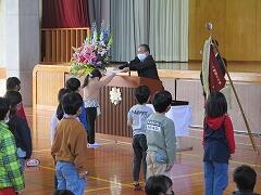校長先生から、学年の代表児童に、「修了証」が渡されました。