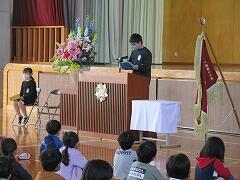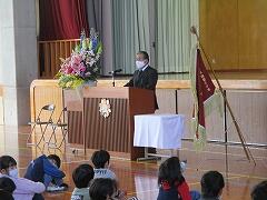 校長先生からは、「学校の目指す児童像」の「『えがおいっぱい』『やさしさいっぱい』『げんきいっぱい』の恒富っ子」となりましたとの言葉がありました。