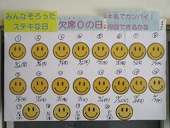 今年度の最後の日、「みんなそろったステキな日(欠席0)」が、目標の年間20日を達成しました。「欠席1」も、目標の年間20日の2倍以上の41日となりました。
