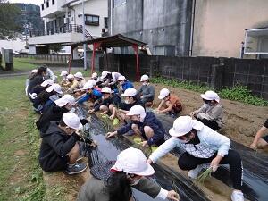 10月21日(木)にJAの方を招いて、3年生が空飛ぶ新タマネギの苗を植えました。JAの方に苗の植え方の説明を受けた後、みんなで手分けして苗植えをしました。初めての経験の子どもたちが多く、楽しそうに植えていました。
