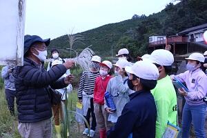 北川には、他地域では見られない豊かな自然が残っています。6年生は北川に残る動物や植物の説明を真剣に聞いていました。