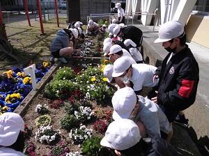 2月17日(木)の清掃の時間は、フラワータイムでした。全校児童で花壇等の草抜きをしました。花壇の花も咲き始め、春が近づいていることを感じます。