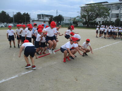 10月7日に運動会の予行練習を行いました。各学年の徒走や団技、表現の入退場などを実際にやってみました。5・6年生は、係の仕事にも取り組み、本番での動きが確認できました。