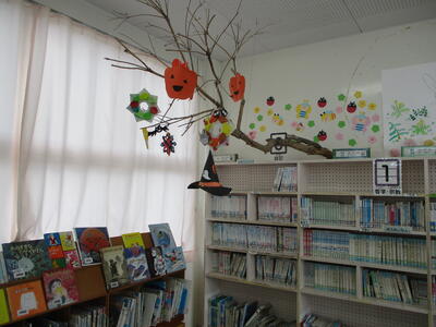 読み聞かせの会「やまもも」の皆様が、図書室にハロウィーンの掲示をしてくださいました。