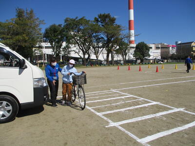 2学期の交通安全教室は運動場で実施できました。今回も梅田学園の皆様を指導者にお招きして、低学年は道路の安全な歩行の仕方を、3年生以上は安全な自転車の乗り方を指導していただきました。子どもたちはしっかりと左右を確認したり、手を挙げたりしながら緊張した面持ちで取り組んでいました。