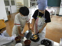 3校時、4校時に6年生が調理実習でスクランブルエッグを作りました。みんな上手に作っていました。休日にはスクランブルエッグ作りをご家庭でもさせてみてください。