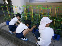 4月に植えた種が芽を出し、その植物の観察を行いました。ホウセンカ、ひまわりなどの観察です。定規で長さを測ったり、葉っぱの数を数えたり一生懸命に観察していました。
