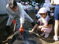 今日の1校時に2年生は芋の苗植えをしました。技術員の宮田先生の指導のもと、苗を植えました。他にも、ミニトマト、ピーマン、キュウリなどの野菜の苗も植えました。収穫が楽しみですね。